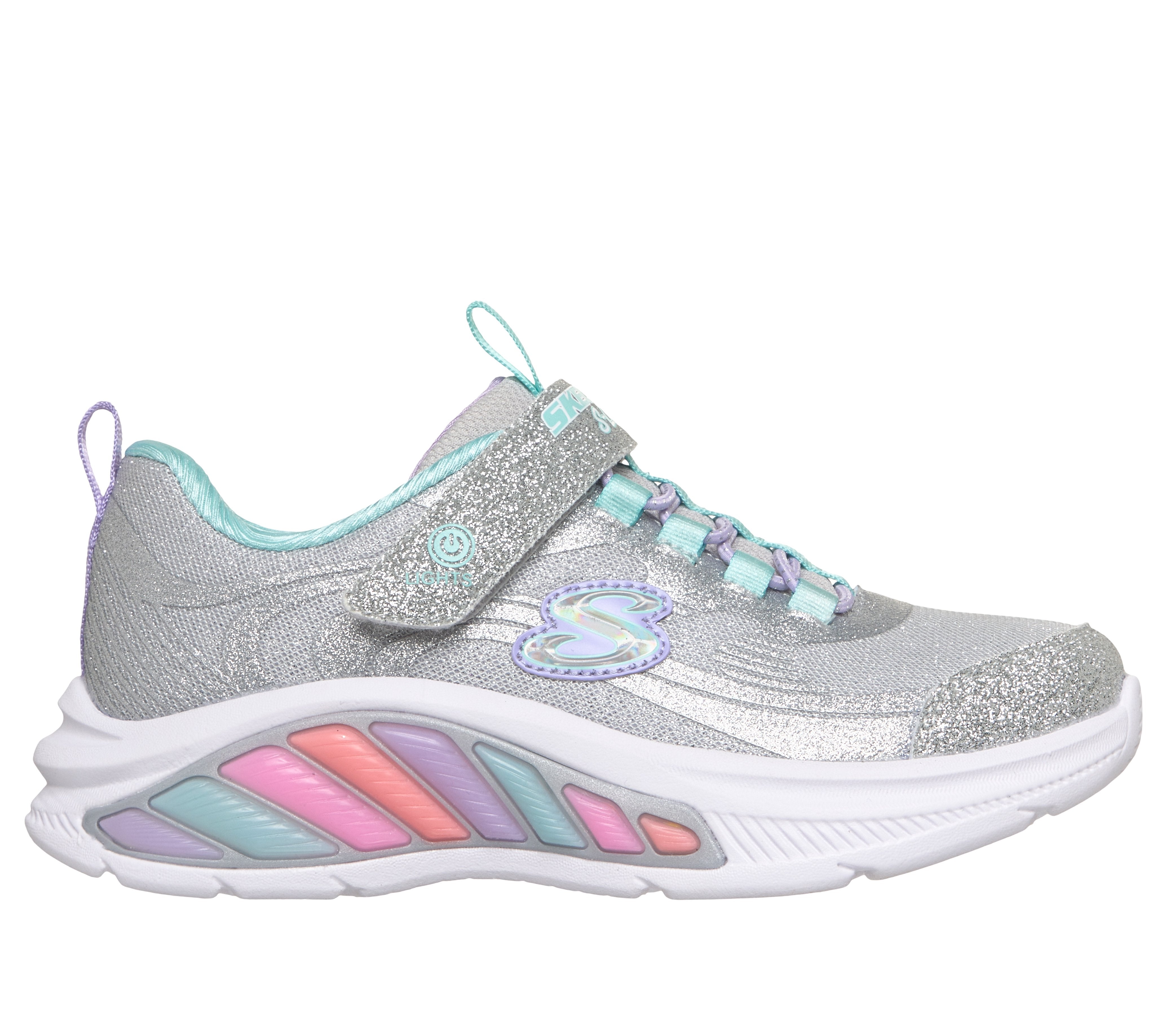 Skechers Rainbow Cruisers Glitzy Glo Girls Runners - Silver/Blue