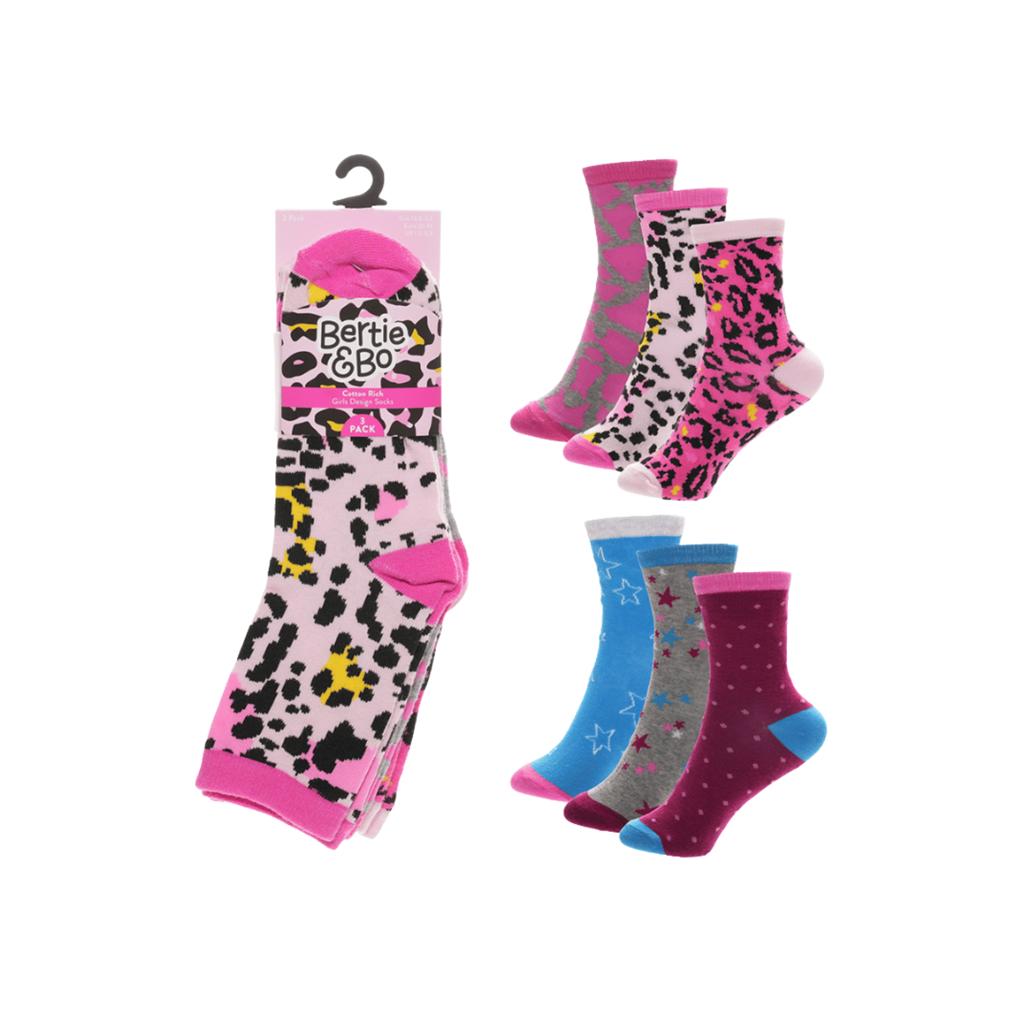 Bertie & Bo Cotton Rich Sock 3 Pack - Leopard/Star